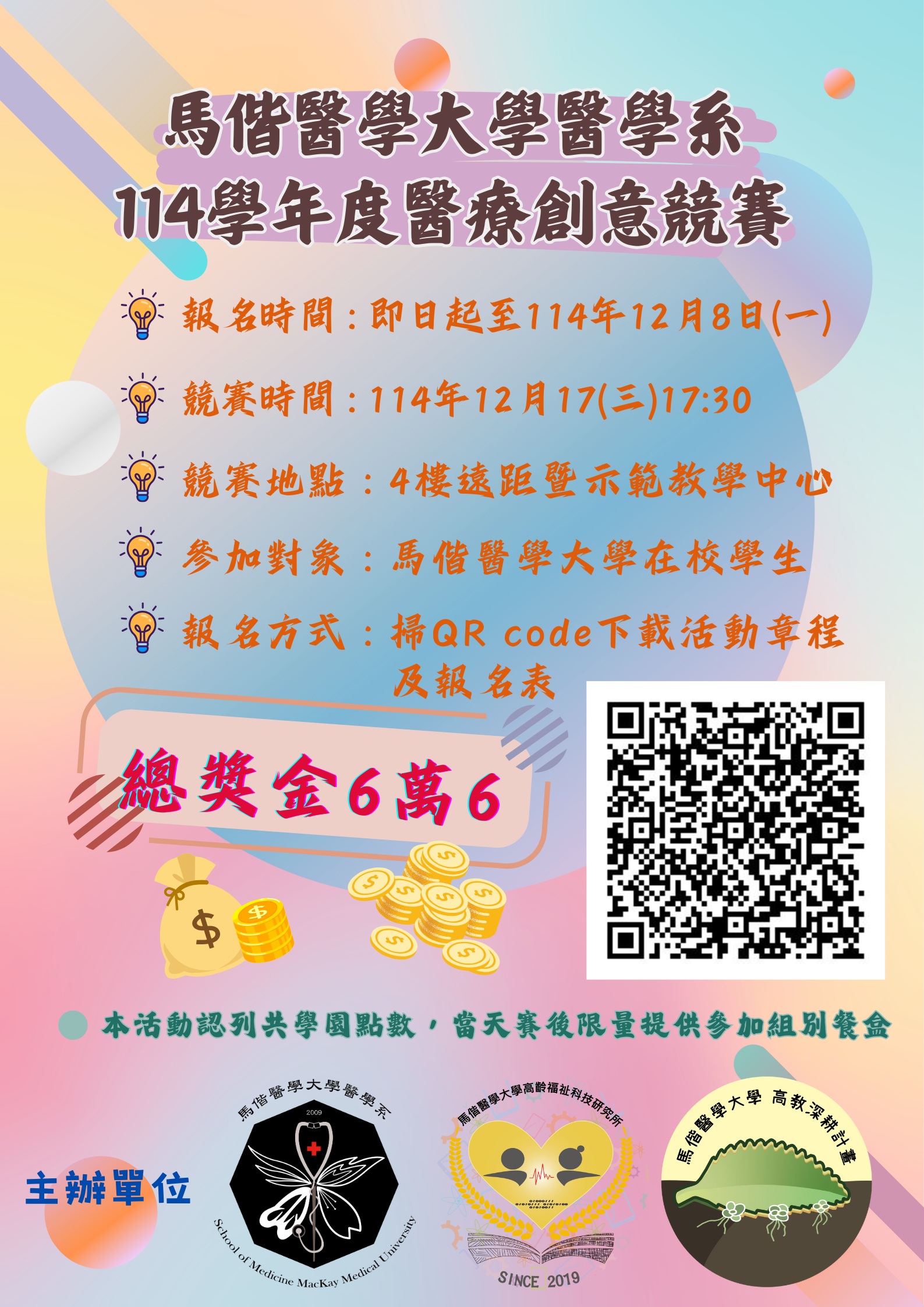 馬偕醫學大學醫學系114學年度醫療創意競賽開始囉~~~